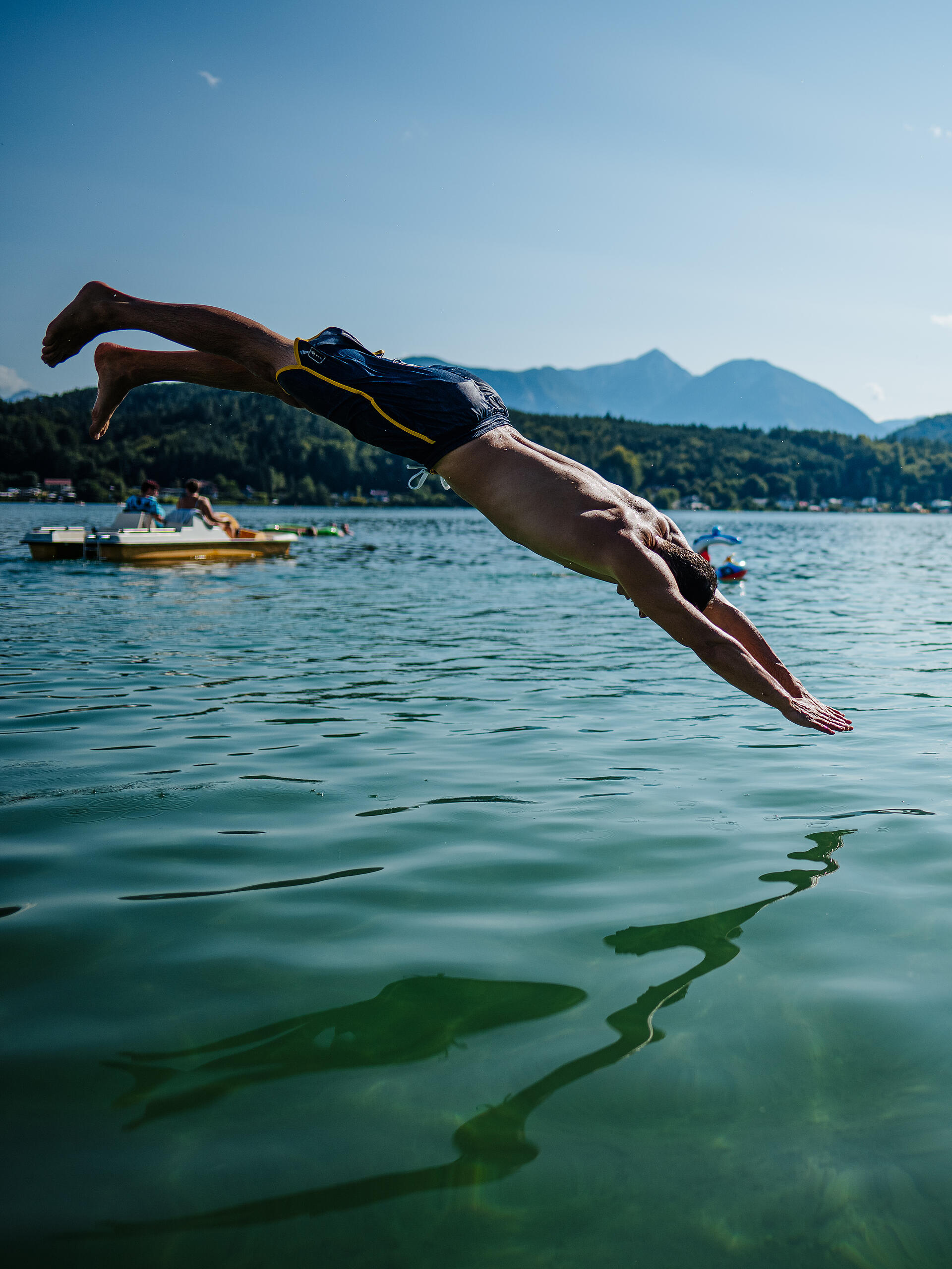 Mit bis zu 28 °C Wassertemperatur zählt der Klopeiner See zu den wärmsten Badeseen Europas – ideal zum Schwimmen, Planschen, Paddeln und einfach nur Genießen. Das Wasser ist glasklar, die Stimmung entspannt, die Kulisse aus Bergen, Wäldern und Sonnenuntergängen – wie gemalt.